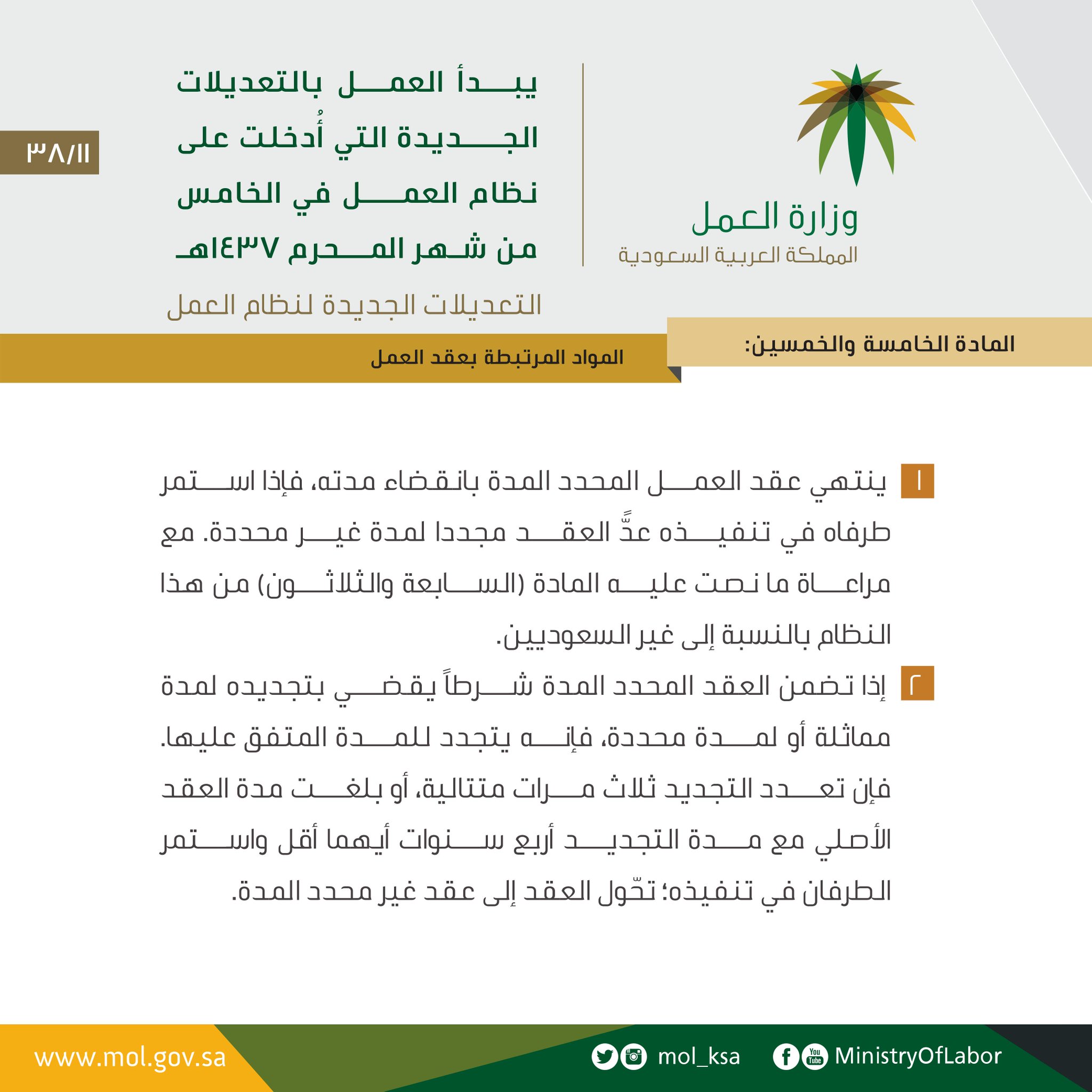 فهد الكستبان On Twitter المادة ٣٧ عقد عمل غير السعودي محدد المدة ولا يمكن أن يصبح غير محدد المدة لذلك لا يمكن لصاحب العمل إنهاء عقد العامل الغير سعودي