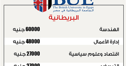 كليات الجامعة الجامعة البريطانية في مصر. الجامعة الأمريكية في القاهرة. مصروفات الجامعة البريطانية لطلاب المصرين العام الدراسي الجديد 2019 2020. ووفق ا لما نشر موقع الجامعة جاءت مصاريف الجامعة البريطانية في مصر للعام الدراسي القادم بـ 80 ألف جنيه للراغبين في الالتحاق طب الأسنان يتم تسديدها على دفعتين بواقع 40 ألف جينه لكل مرة في حين حددت 60 ألف جنيه كمصاريف. يقدم لكم موقعكم أهل مصر مصاريف الجامعة البريطانية فى مصر للعام الدراسي 2018 2019 حيث أعلنت الجامعة البريطانية عن مصروفات المحدثة للعام الجديد لذلك سنخبركم من خلال التقرير التالي بشروط والحد الأدني لدخول كليات.
